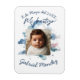 Celebra este momento tan especial con la foto del niño o niña acompañada de un diseño hermoso azul.