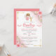 Celebrate your baby girl's Catholic baptism with this invitation featuring a cute angel and pink flowers. Customise this design. Available in Spanish.