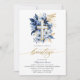 Modern and Elegant Spanish Baptism Invitation. This beautifully designed invitation features the word "Bautizo" in handwritten gold lettering. The design is adorned with exquisite watercolor navy blue and gold flowers, complemented by a delicate gold and blue cross, all set against a pristine white background. Personalise the invitation further with your celebration details to create a truly unique and memorable keepsake.