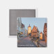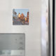 This souvenir magnet features a photograph taken in the evening at blue hour of the Plönlein in Rothenburg ob der Tauber, Franconia, Bavaria, Germany.