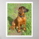 Photograph of a Bavarian Mountain Dog sitting in the grass.