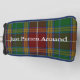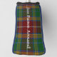 Colourful plaid putter golf club cover done in the classic green, yellow, red, blue, and white clan Baxter tartan pattern. White text reads, Just Putten Around, and can be personalised to read what you want.