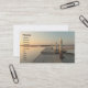Your contact information displays against a landscape showing an empty kayak dock lit by the rising sun. Customise to change the shape or rearrange the text.
