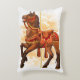 I have always loved carousels. The beautiful designs of the animals and music from carousels set up at fairs and parks are special memories from my childhood. That inspired creating some carousel horses of my own, then colouring them with acrylic ink. The watercolor featured on this pillow of a bay horse decorated in red and gold is one of the results.