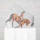 Repeated pattern of a horse and rider. Horse is bay with black points and is being ridden in a collected trot.