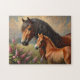 Bay Mare with a Foal Wildflowers Painting Jigsaw Puzzle