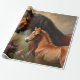 Bay Mare with a Foal Wildflowers Painting Wrapping Paper