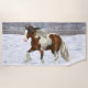 Bay Pinto Gypsy Vanner Draught Horse In Snow Beach Towel