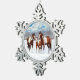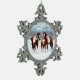 Bay Pinto Paint Horses In Winter Snow Snowflake Pewter Christmas Ornament