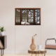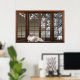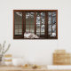 The artwork creates the illusion of having a window on your wall. The illusion gives the feeling of looking out at a beautiful white blossom landscape. To make this poster even more interesting I added a Persian Cat resting on the sill. A Very unique and original poster!