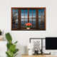 The artwork creates the illusion of having a window on your wall. The illusion gives the feeling of looking out at a calm lake To make this poster even more interesting I added a pot of flowers on the sill. A Very unique and original poster!