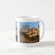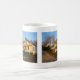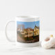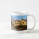 a coffe mug featuring an image of cottages in the village of Bayside Maine.