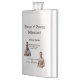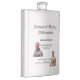 The product is a good size and came exactly as it was pictured. The lid is not attached to the flask, which could be dangerous on drunken nights... The print came out surprisingly well and looks very sharp. Would definitely recommend.