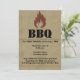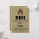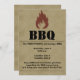 The summer BBQ invitation features a rough paper background with a flame on top. The letters "BBQ" are in thick bold letters, and are fully customisable. Edit all your text!
