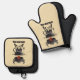 Dark ivory oven mitt and pot holder feature a BBQ grill with steer's horns and legs.