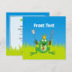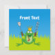 Prince frog with BBQ tools, tongs and spatula over green grass under blue sky.