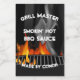 A graphic illustration of a flaming barbecue grill by artist/designer Charmaine Paulson on a BBQ sauce label.