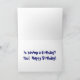 This card is great fun and good quality. I loved the humour inside and on the back. There is the opportunity to change the orientation of this card from landscape to portrait, which I did. It is relatively straightforward to amend the typeface to fit the new orientation. It was well packaged with no plastic. The printing on this card is excellent.
