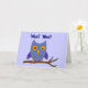 Cute funny owl birthday card says Who? Who? is having a birthday? You. Happy Birthday.