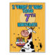 "I 'herd' it was your 7th birthday!" fun b-day cow holding a birthday cake greeting card.