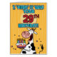 "I 'herd' it was your 29th birthday!" fun b-day cow holding a birthday cake greeting card.