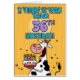 "I 'herd' it was your 36th birthday!" fun b-day cow holding a birthday cake greeting card.