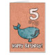 Happy birthday whale - 5 years old Cute humpback whale on an age specific birthday greeting card. Inside text: "Hope you have a whale of a time!"