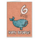 Happy birthday whale - 6 years old Cute humpback whale on an age specific birthday greeting card. Inside text: "Hope you have a whale of a time!"