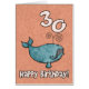 Happy birthday whale - 30 years old Cute humpback whale on an age specific birthday greeting card. Inside text: "Hope you have a whale of a time!"