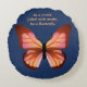 This inspirational round pillow features graphic artwork depicting a beautiful butterfly in colours of orange, pink and black with easy to customise text reading "In a world filled with moths, be a Butterfly!"