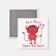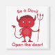 This is a cute red devil graphic with the message 'Be a Devil. Open the door' written in red above and below.
