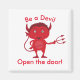 This is a cute red devil graphic with the message 'Be a Devil. Open the door' written in red above and below.