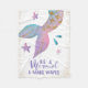 Whimsical and trendy fleece blanket featuring a pink, teal, purple ombre mermaid tail with faux gold glitter details with stars and splash of water around. The typography text at the bottom says "Be A Mermaid & Make Waves."