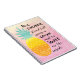 Be A Pineapple Notebook - Remind yourself of your love for all things tropical with this fantastic watercolor typography quote art notebook. The background is watercolor base in shades of yellow and pink. Featuring an illustration of a pineapple with the quote: "Be a pineapple, stand tall, wear a crown and be sweet on the inside." Remember to stay sunny and quirky all year around while keeping track of your important notes and appointments. One of our best sellers!