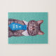 "BE AWESOME!" Cat in Blue Tie, Teal, Your Messag Jigsaw Puzzle