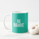 Bold white be brave simple motivational quote playful typography in turquoise solid background design.