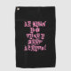 Be Calm and Take A Deep Breath with distressed letters. Personalise this Golf Towel with your message and laugh your way around the links. Pink and black text on black background.
