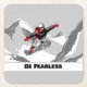 An avid snowboarder is fearless as he skies down the snow packed mountains at full speed.
