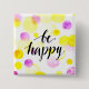 Modern calligraphy inspirational quote - be happy - at pink and yellow watercolor dots background | Bigstock® - All Rights Reserved.