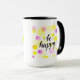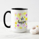 Modern calligraphy inspirational quote - be happy - at pink and yellow watercolor dots background | Bigstock® - All Rights Reserved.