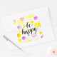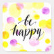 Modern calligraphy inspirational quote - be happy - at pink and yellow watercolor dots background | Bigstock® - All Rights Reserved.