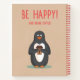 Cute cartoon penguin with coffee cup on pastel background. Lettering Be happy and drink coffee | Bigstock® - All Rights Reserved.