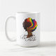 This mug is from my Hers and Hers line. On one side of the mug is the image of an African American woman. She has natural hair, with rainbow stripes. The rainbow stripes represent the LGBT flag. One the other side of the mug is my logo.
