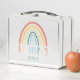 Time to get ready for school, and what better way to do that than with a personalised lunch box! Make your child happy with this cheerful Boho rainbow lunch box that says "Be Happy". Maybe you're a kid at heart - bring your personalised lunch box to work. Everyone will know who it belongs to, so no one will mistake it for their lunch. This lunchbox can be customised with a name or short phrase. The colours of the rainbow are pastel pink, yellow, blush, green and blue.