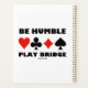 If you play bridge, then you know that bridge is a game in which it is appropriate to be humble, especially when you are declarer and have missing achieving a contract. Showcase your wry bridge / duplicate bridge player side with this planner featuring the four card suits along with the following sound bridge advice: "Be Humble Play Bridge".