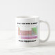 Wry and sly Periodic Table of Elements humour is alive and well on this double-entendre saying mug featuring the following advice: "Be In Your Own Element Think Periodically". Make others do a double-take and wonder what you mean with this scientific, educational geek humour mug today!