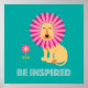 Cute motivational poster of a lion with a flower mane being inspired by a flower to remind us sometimes we only need to look around at our surroundings to be inspired. This poster is designed with love by Aubergine and Purple.