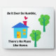 Little blue house with trees in yard and quote: "Be it ever so humble, there's no place like home." Adorable gift for the new home owner, family, or friend.