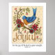 This contemporary hand-painted bluebird sits upon a branch of beautiful blossoms singing out "be joyful". Beneath the colourful art is the hand-lettered Bible verse Nehemiah 8:10... "For the joy of the Lord is your strength."