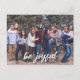 The front of this postcard features your favourite photo and holiday greeting in brush script. On the back is your personalised text and return address. Use the template form to add your custom text and photo to the front and back of the card. Use the Customise It button to add additional lines of text or to change the font.